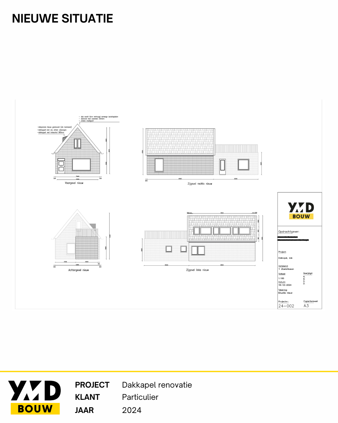 De dakkapel aan de rechterzijde wordt verwijderd en de dakkapel aan de linkerzijde wort volledig vervangen.